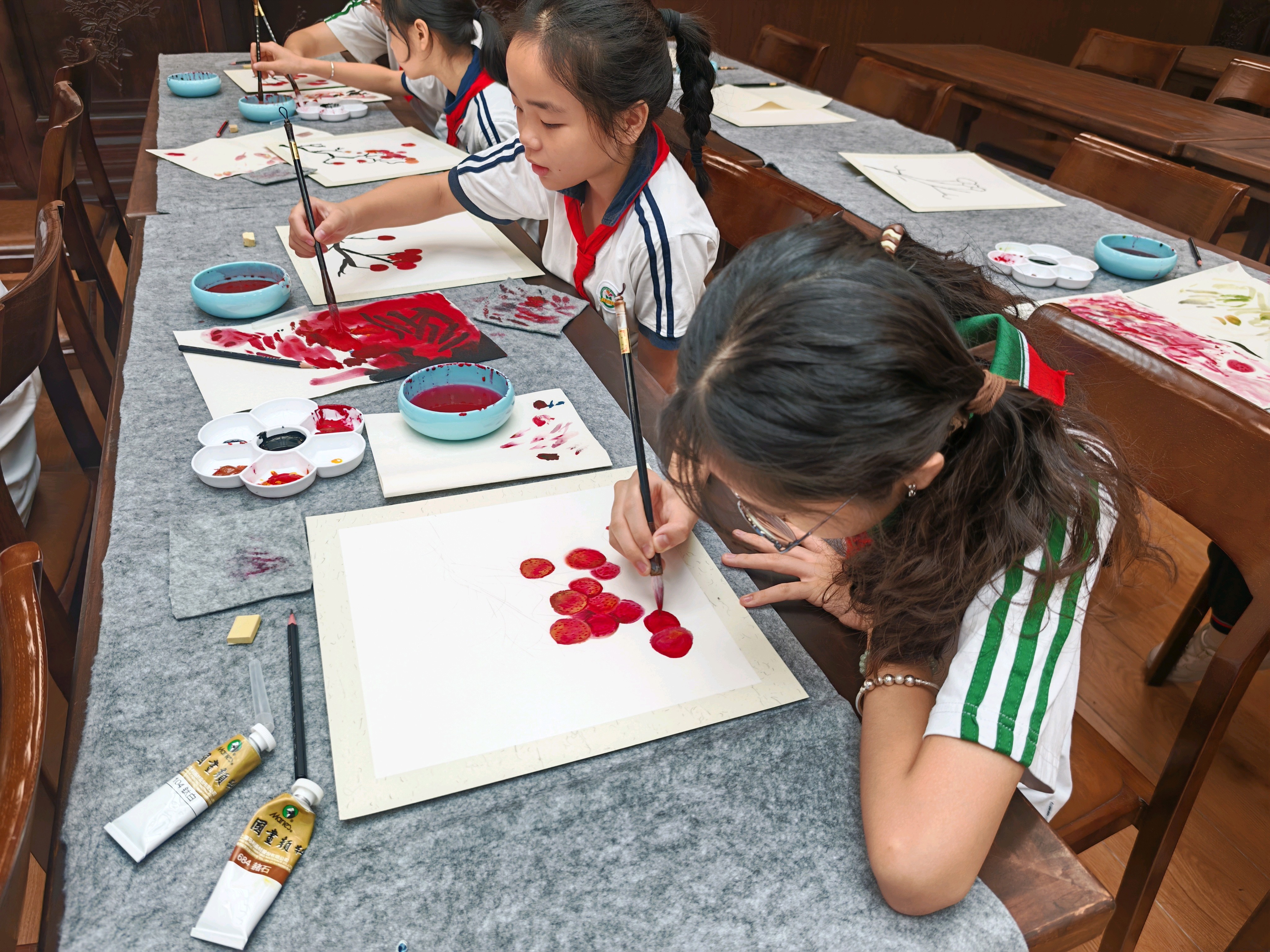启动仪式后,与会嘉宾还参观了昌岗街道公益绘画班青少年作品展、昌岗街道社区微改造项目和昌岗岭南文化交流中心。切身感受昌岗街道通过党建引领基层治理,融入十香园文化元素,打造社区特色景观,增添街区文化底蕴,形成“空间焕新——文化再生——生活提质”的良性闭环。辖区中小学生代表还深度参与了“岭南荔韵:从画谱到当代的非遗传承”撞色撞粉课程,沉浸式体验岭南书画艺术魅力。